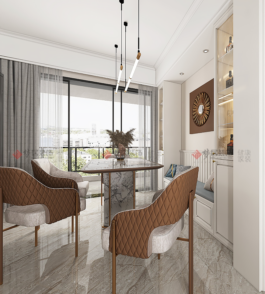| 設(shè)計(jì)說(shuō)明:設(shè)計(jì)師沒有用特定的風(fēng)格去界定這套作品,空間交織融和現(xiàn)代、北歐、美式等多種風(fēng)格元素,精煉地碰撞出完美的混搭主義。和諧干凈的空間界面,最終呈現(xiàn)出一種自然舒適的風(fēng)格形態(tài)。設(shè)計(jì)元素多而不雜,空間色彩也盡顯低調(diào)的奢華,家具、軟飾的搭配不拘一格,黃銅搭配現(xiàn)代簡(jiǎn)約的家具,更顯高檔,展現(xiàn)出既復(fù)古又時(shí)尚的精致空間。打破風(fēng)格間的界限,將業(yè)主喜歡的元素在空間中達(dá)成平衡取舍,讓空間以隨性而自由的姿態(tài)展現(xiàn)在業(yè)主面前,達(dá)到空間的舒適性、和諧性的統(tǒng)一。 | |||