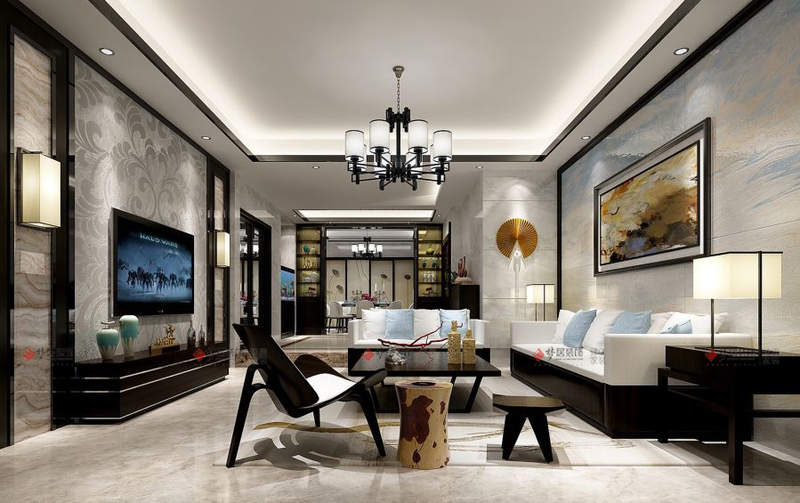 | 設(shè)計(jì)說明:新中式設(shè)計(jì)是傳統(tǒng)與現(xiàn)代居室風(fēng)格的碰撞,將中式元素與現(xiàn)代材質(zhì)的巧妙糅合,以現(xiàn)代的裝飾手法和家具,結(jié)合古典中式的裝飾元素,來呈現(xiàn)亦古亦今的空間氛圍。中式風(fēng)格與現(xiàn)代風(fēng)格的簡單素雅自然銜接,使生活的實(shí)用性和對傳統(tǒng)文化的追求同時(shí)得到了滿足。室內(nèi)布局造型簡潔現(xiàn)代,飾以典雅的花紋、裝飾單品,這種將時(shí)尚與古典的巧妙結(jié)合給人以強(qiáng)烈的視意識。室內(nèi)對稱式的布局方式,格調(diào)高雅,造型優(yōu)美,色彩濃重而成熟。 | |||