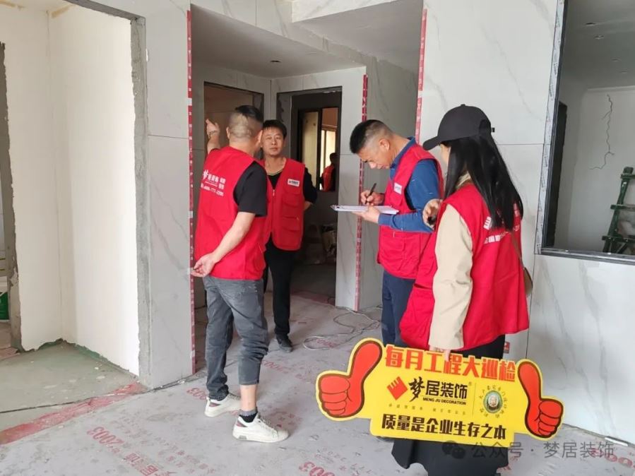 夢居每月工地大巡檢,共同監(jiān)督解決施工過程中發(fā)現(xiàn)的問題,促進工程順利進行。細致完善的巡檢制度以及強化質(zhì)量要求,進一步提高施工質(zhì)量和效率,為裝修項目的順利進行提供有力保障,為業(yè)主愛家保駕護航!