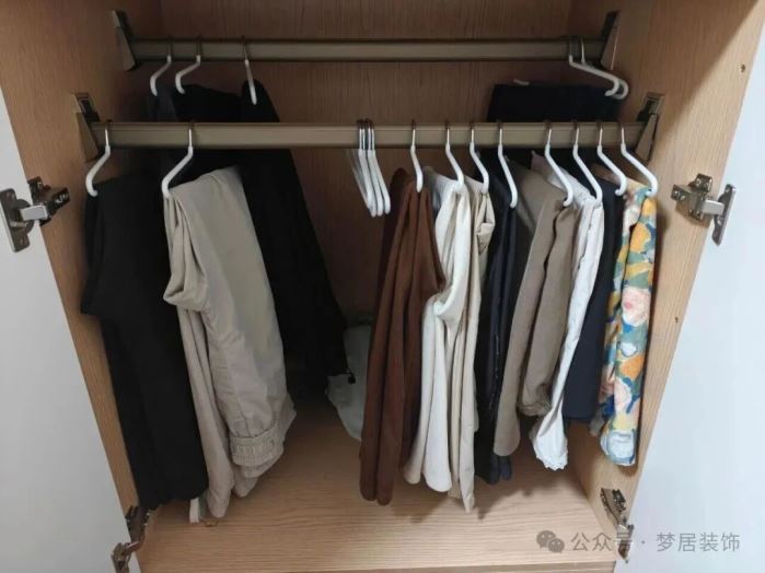 高低兩根掛衣桿,上下錯開,一眼看到想穿的那件,拿取也方便。
