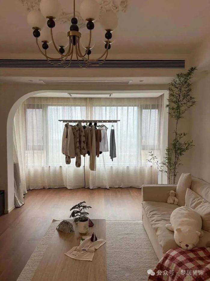 好不容易擁有一個美麗的陽臺大窗戶,不想因為晾衣影響整體美觀,那就做個不到1平米的晾衣區(qū)設(shè)計。