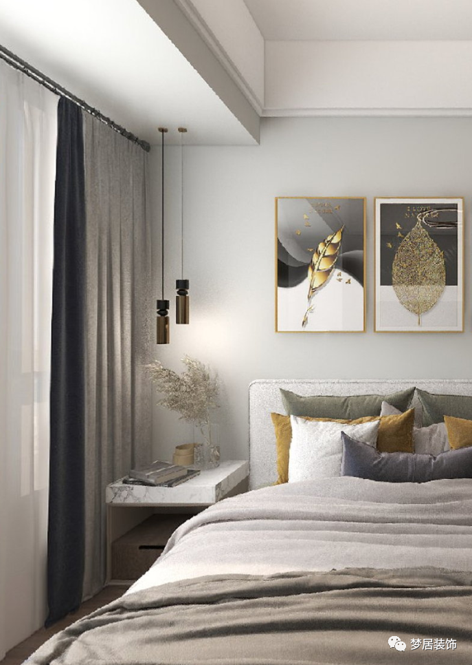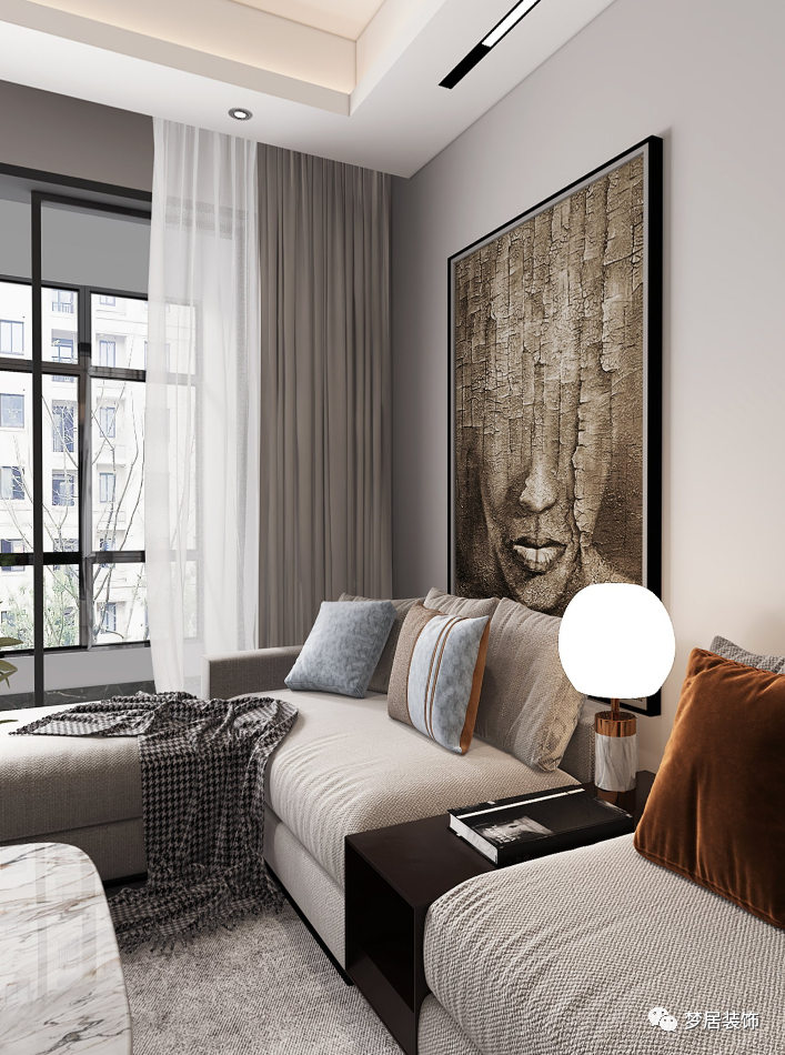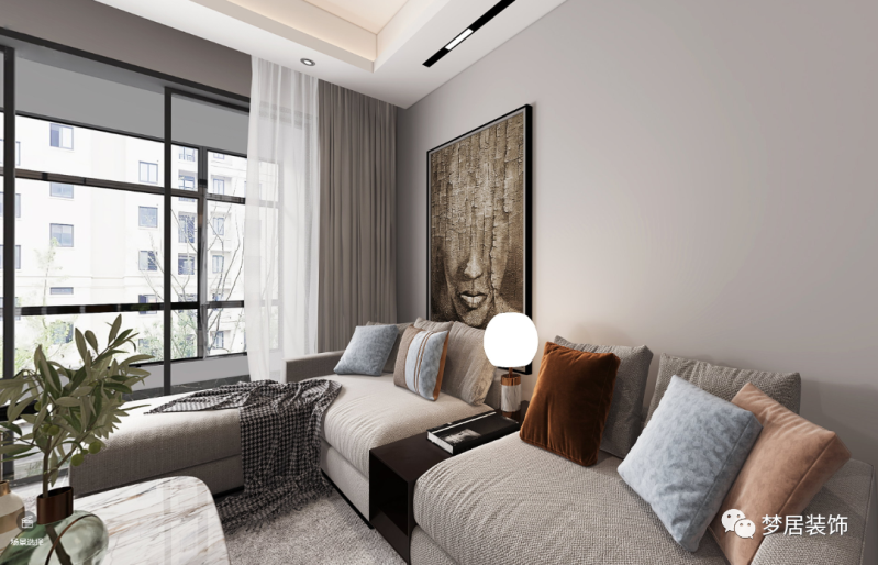 布藝沙發(fā)柔軟舒適,絲絨質(zhì)感的抱枕為空間增加時尚華麗的效果。藝術(shù)掛畫打造時尚氛圍,彰顯個性。搭配綠植使居室愜意,輕松。少量的裝飾元素,通過完美的軟裝搭配同樣彰顯空間美感。