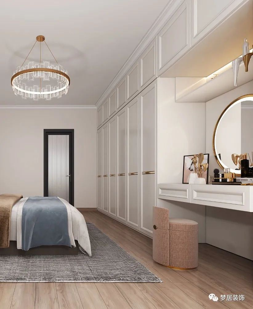 淺色地板給人開闊感,讓房間在視覺上顯得更明亮。
