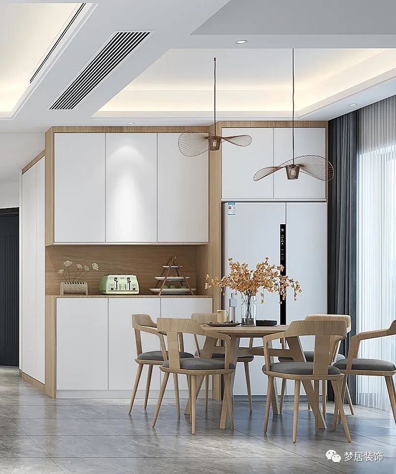 一般來(lái)說(shuō),廚房、餐廳對(duì)冰箱的依賴比較大。廚房的面積比較小,可以把冰箱放在餐廳,定制餐邊柜時(shí)提前預(yù)留冰箱位置,嵌入式設(shè)計(jì)更具整體感。