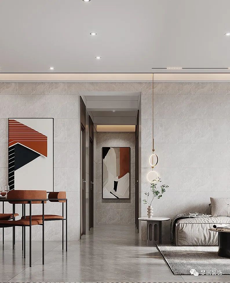 入戶玄關(guān)設(shè)置了鞋柜和物品收納區(qū)域,方便業(yè)主日常生活所需。入戶的設(shè)計(jì)也為室內(nèi)空間起到了一個(gè)緩沖的作用,保持室內(nèi)空間的私密性??蛷d搭配淺灰色地磚通鋪,“無(wú)主燈”設(shè)計(jì)令空間更加舒適寬敞。偏硬朗的現(xiàn)代風(fēng)格簡(jiǎn)潔大氣,簡(jiǎn)約隨性的布藝沙發(fā)搭配大幅現(xiàn)代畫(huà)作,極具設(shè)計(jì)感,干凈利落的線條簡(jiǎn)潔優(yōu)雅,復(fù)古的橙色在現(xiàn)代空間中碰撞出不一樣的時(shí)尚感。臥室地面采用木地板鋪貼更溫馨,整墻衣柜滿足收納,借助飄窗設(shè)計(jì)出梳妝臺(tái),節(jié)省空間區(qū)域。時(shí)尚的現(xiàn)代手法呈現(xiàn)出年輕人所青睞的新時(shí)代理想居所。