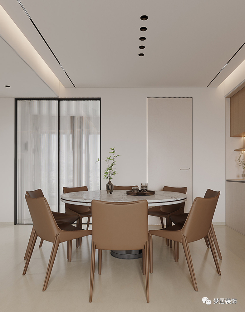 溫柔奶油風(fēng),微甜的奶茶色和醇厚奶咖色層層漸進(jìn),清淡透亮之中疊加變化,賦予了整個(gè)空間濃郁而純粹的香甜優(yōu)雅,搭配綠植,溫潤而高級(jí),十分療愈。