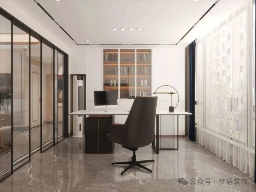 對(duì)于現(xiàn)代城市工作者而言,生活與工作之間的界限漸越模糊,辦公場(chǎng)景開(kāi)始融入生活理念,生活場(chǎng)景自然也多了辦公訴求,書房功能必不可少。從辦公桌椅到書柜,筒燈搭配線形燈以及臺(tái)燈實(shí)現(xiàn)多場(chǎng)景休閑辦公燈光需求,設(shè)計(jì)師將空間進(jìn)行多層次、多維度的美學(xué)場(chǎng)域構(gòu)建,無(wú)論是閱讀還是辦公,皆能喚起精神世界的閑適與自如。