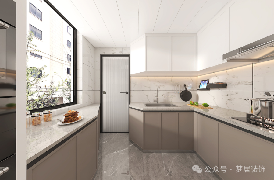 廚房推演出最優(yōu)的生活尺度,簡(jiǎn)約精致的設(shè)計(jì)給足生活儀式感。木色與白色廚柜即便在烹飪中也不失迷人的雅致氣息。簡(jiǎn)約的石英石操作臺(tái)面輕松簡(jiǎn)雅,兼具性能和藝術(shù)的精髓,于此間暢享味蕾與視覺(jué)的雙重感受。