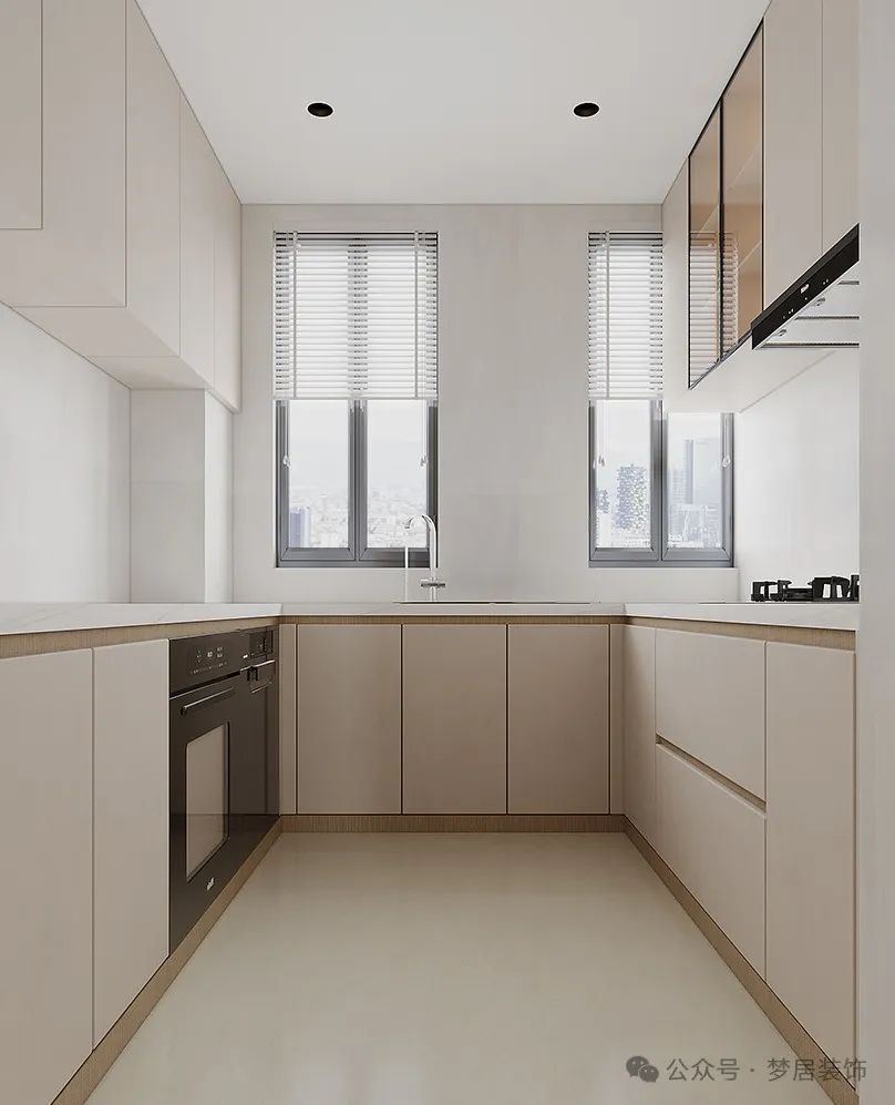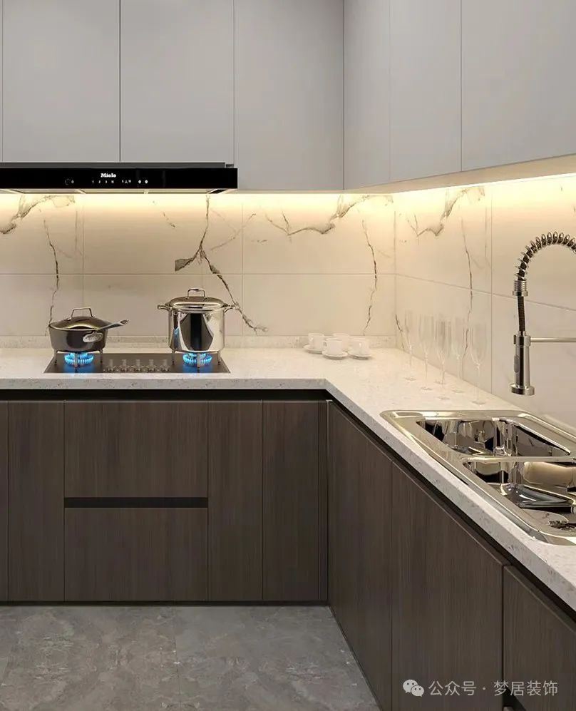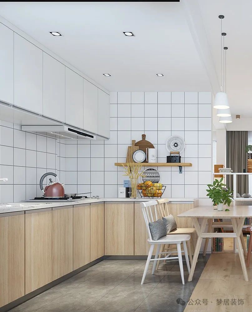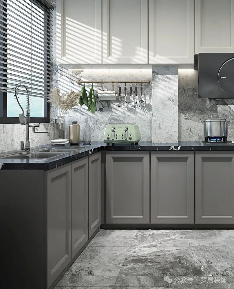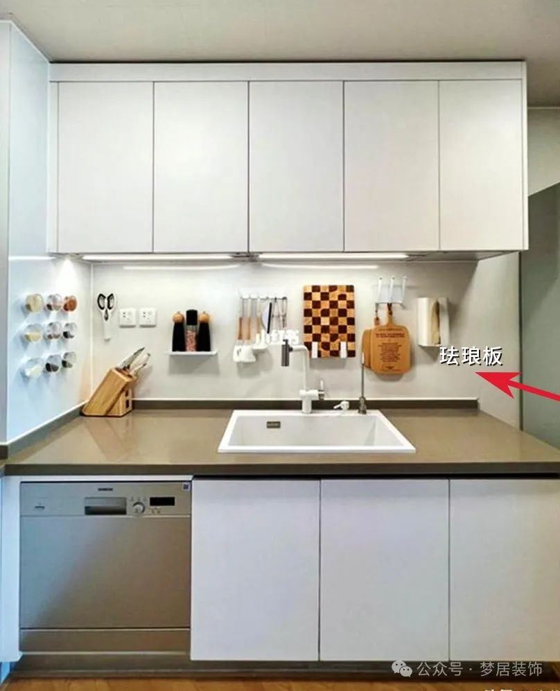 因此,在裝修廚房時(shí),建議大家選擇較為整體的墻面磚,剛好櫥柜中間可以是一整塊,不僅美觀大氣,也好清潔。