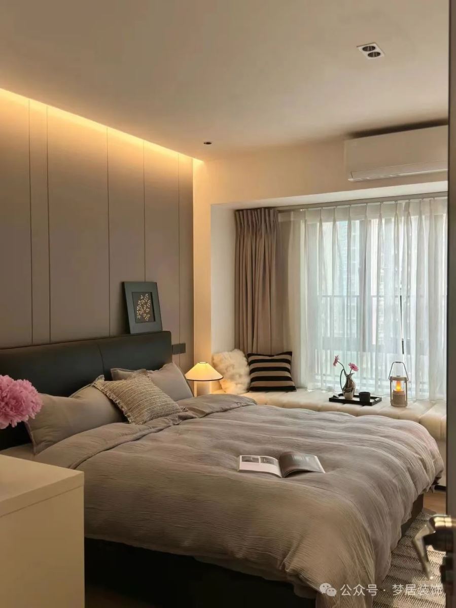 建議:盡量別把床頭擺放在窗口,實(shí)在喜歡這樣的布局,可以選購(gòu)一個(gè)厚實(shí)的床靠背遮擋。睡眠時(shí)可以將遮光性比較好的窗簾拉上,來(lái)?yè)踝『L(fēng)和光線,在心理或視覺(jué)上也會(huì)更舒適的感受。