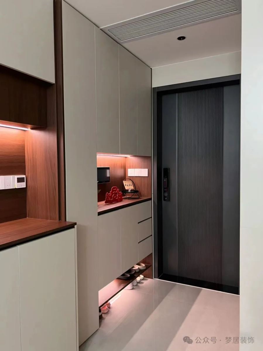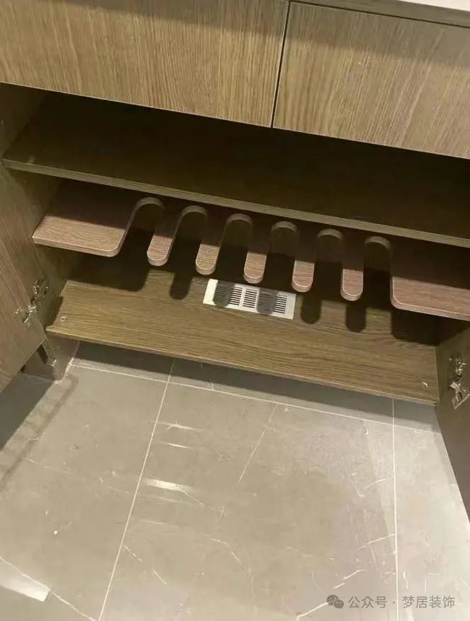 大多數(shù)家庭做玄關(guān)鞋柜底部都會懸空用來收納高頻使用的鞋很方便。