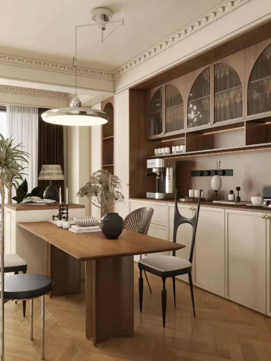 通過簡化造型與裝飾,讓整個空間的基調(diào)呈現(xiàn)出一種優(yōu)雅低調(diào)、克制內(nèi)斂的氣息,在不經(jīng)意間散發(fā)出摩登復(fù)古的美學(xué)氣質(zhì)。