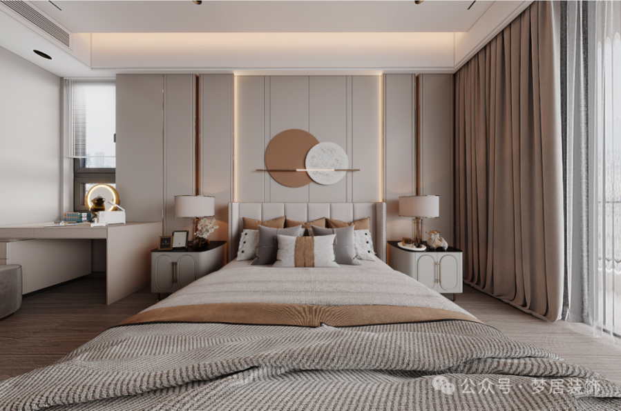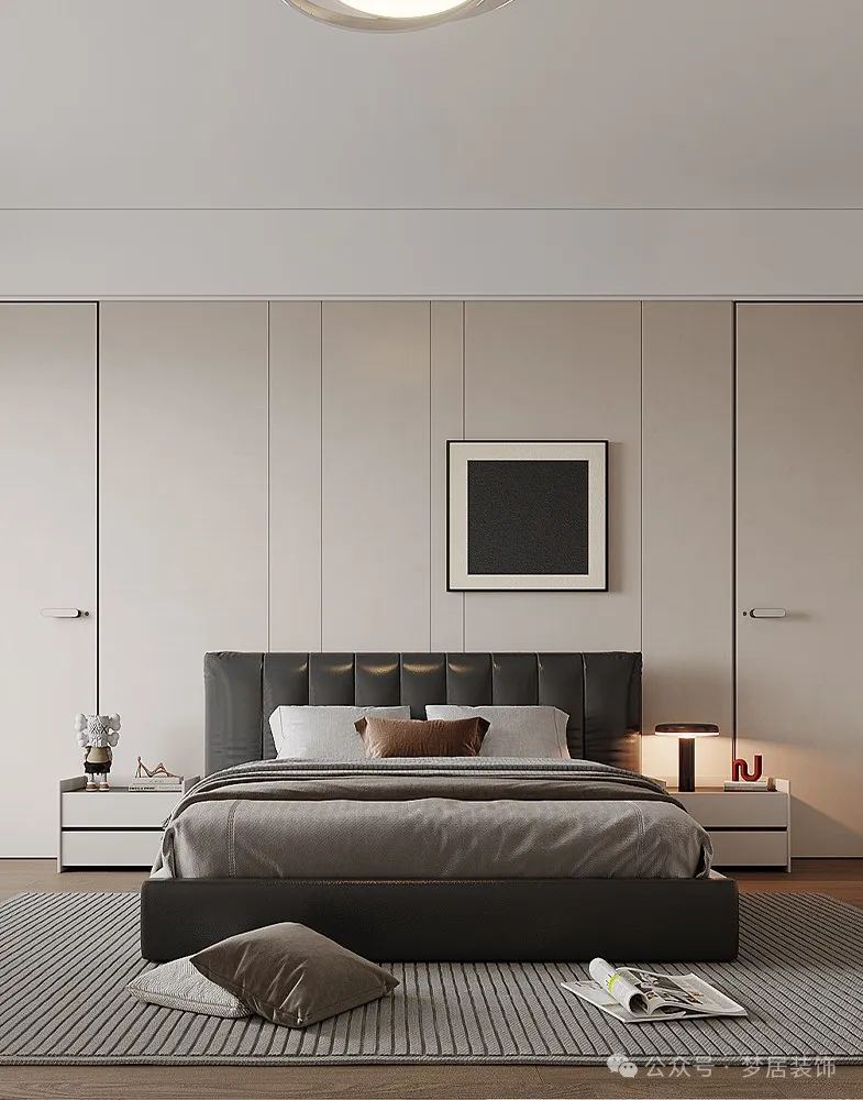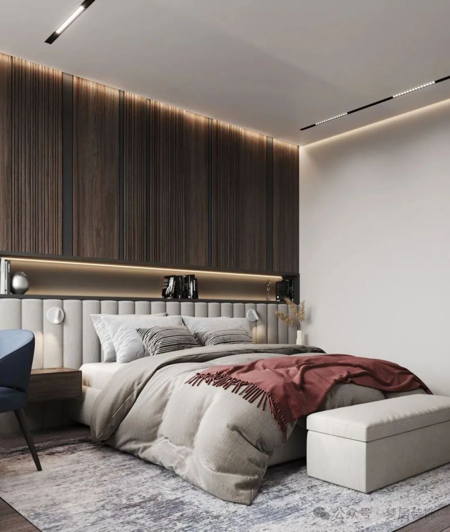 臥室的隔音做得好,能讓我們更高效休息。背景墻做軟包搭配燈帶,組合起來不僅能提升臥室的氛圍感,空間精致,隔音又實用。