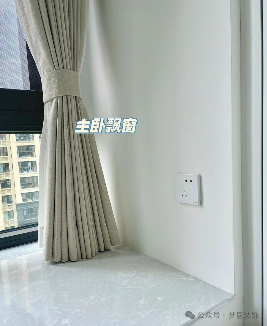 飄窗側(cè)面預(yù)留插座,入住后喜歡靠在這里看書,曬太陽的,要是手機沒電了可以充電,或者想在飄窗上喝茶聊天用電腦,也可以插電。