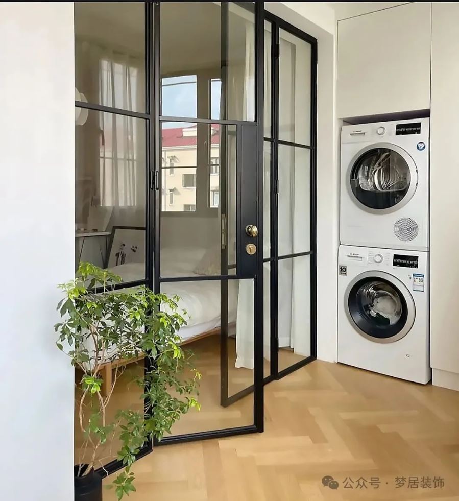 ⑤洗衣陽臺:設計家務陽臺,在陽臺的一側加建家務儲物柜,收納平時用的生活用品,另一側設置洗衣區(qū),配置洗衣套裝,滿足日常的洗衣需求。