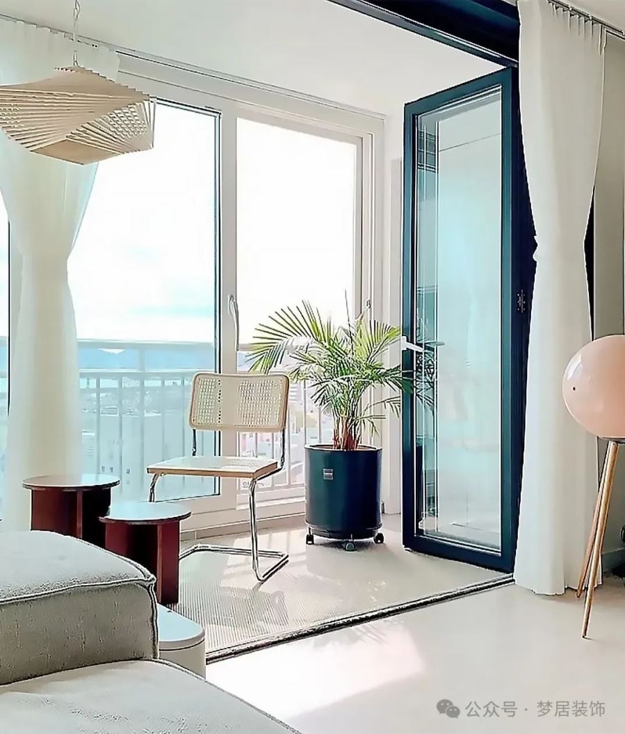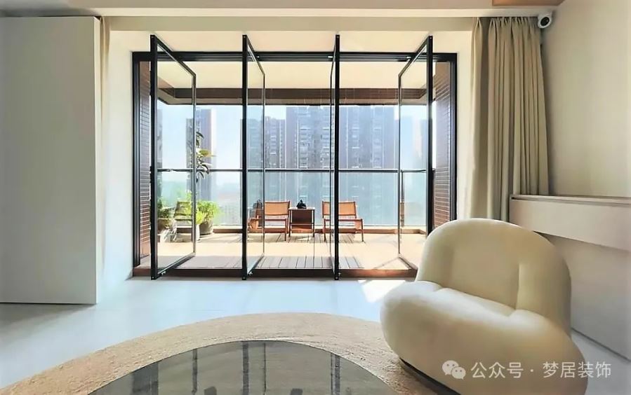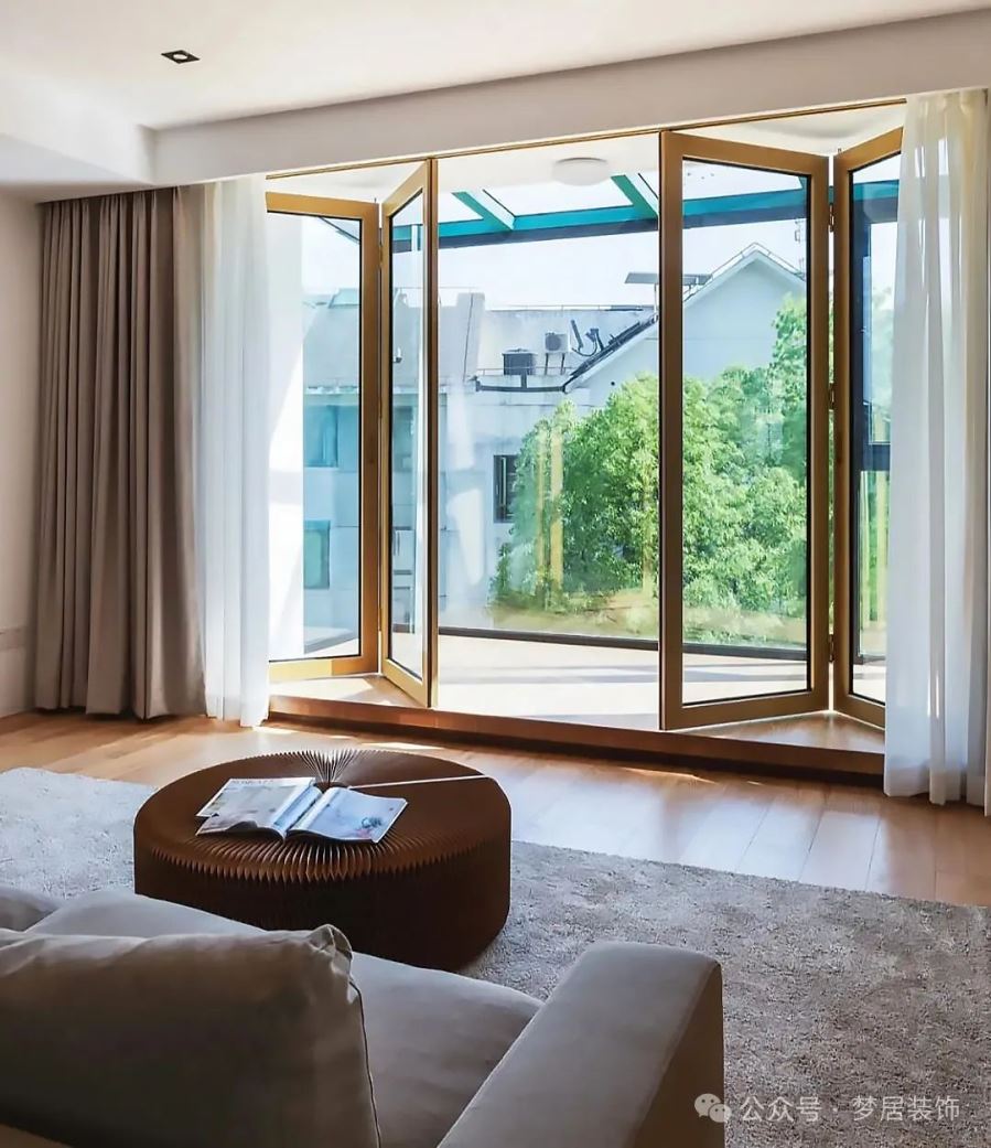 ③折疊門 :折疊門打開后占用空間面積更少。讓陽臺和客廳更加寬敞大方,視線更加開闊。