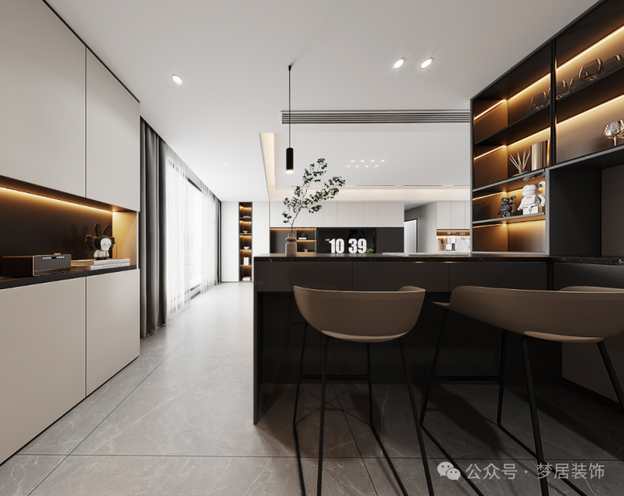為滿足業(yè)主對(duì)休閑與閱讀空間的需求,我們精心設(shè)計(jì)了一個(gè)開(kāi)放式的休閑區(qū),開(kāi)放式的布局使得空間利用更加靈活,同時(shí)增加家庭成員在共享空間中的陪伴時(shí)間。